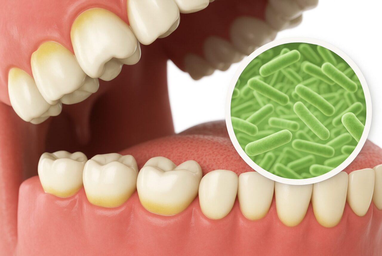 歯周病の主な原因は、歯垢(プラーク)と呼ばれる細菌の塊です。この歯垢が歯と歯肉の間に長期間停滞し、唾液中のミネラルと結合すると、硬い歯石へと変化します。歯石はブラッシングでは除去できず、さらに細菌の温床となって歯周病を悪化させる悪循環を生み出すのです。